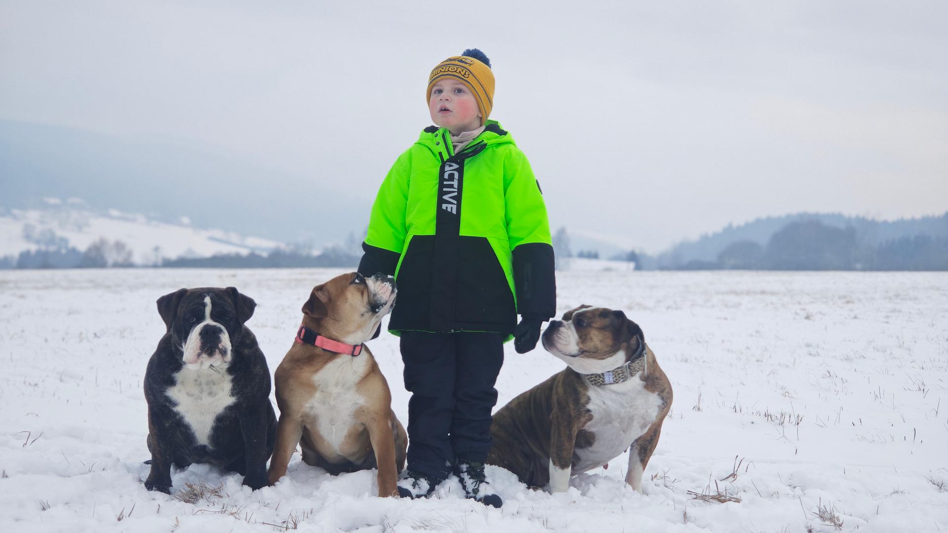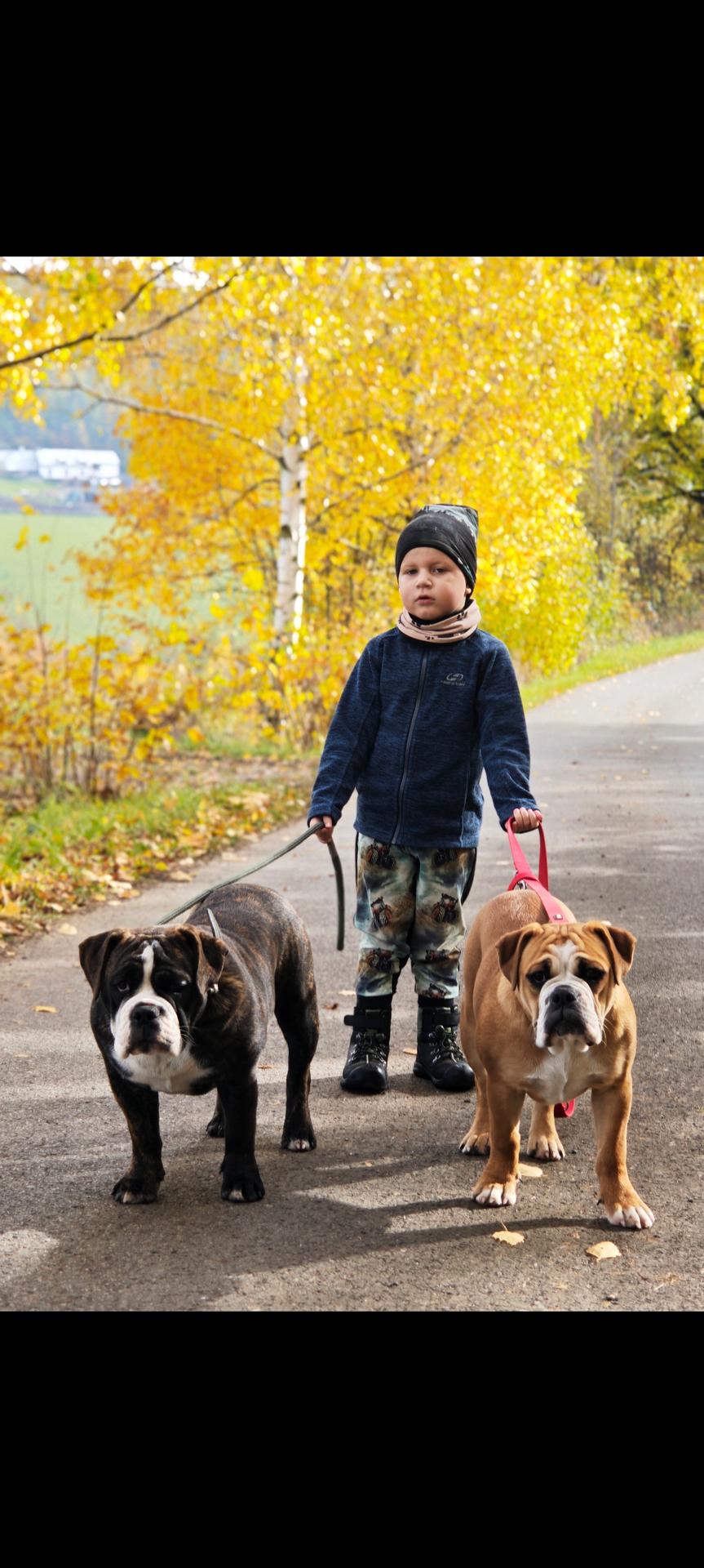 Celkem vlastníme 5 kontinentálních buldoků a jednoho německého ohaře, se kterým se aktivně věnujeme myslivosti.