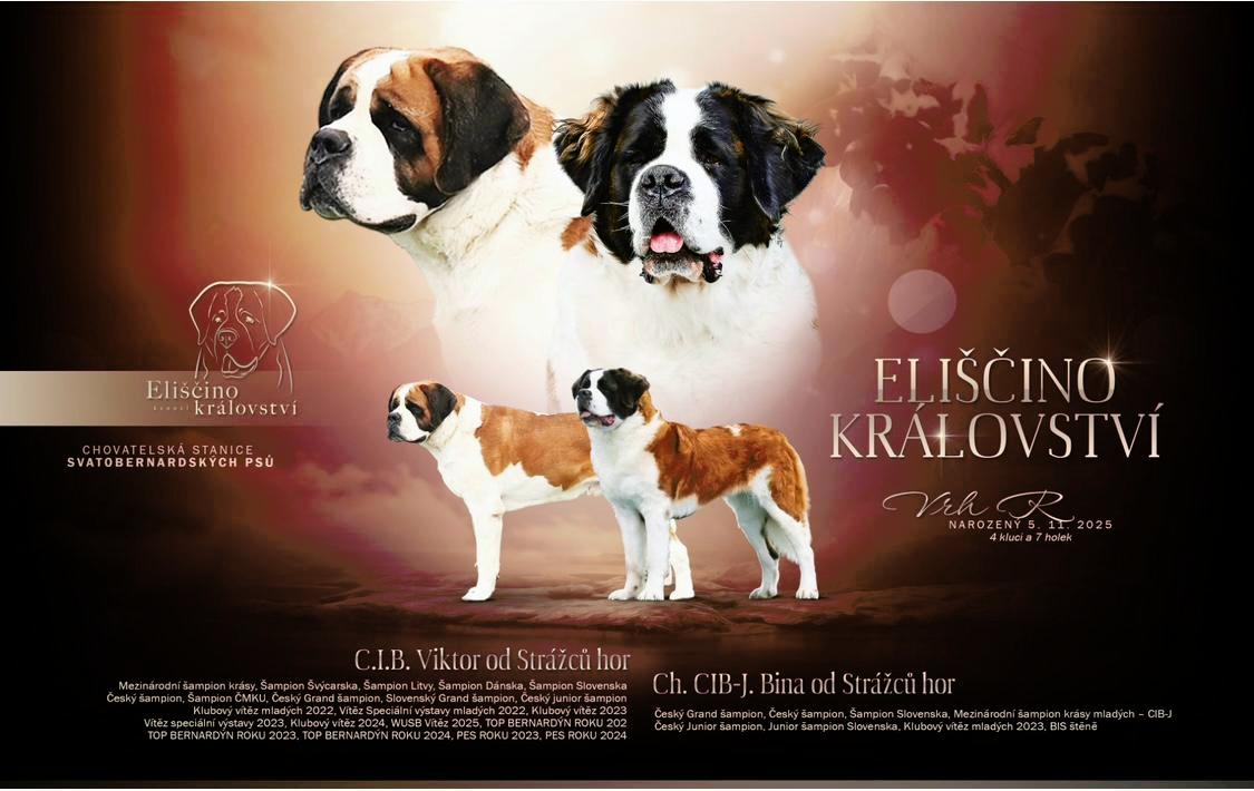 Chovatelská stanice Eliščino království nabízí k prodeji krásná štěňátka bernardýna s průkazem původu.